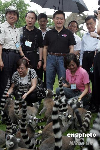 臺北市長郝龍斌一行到上海野生動(dòng)物園參觀,并與狐猴“親密接觸”。中新社發(fā) 潘索菲 攝