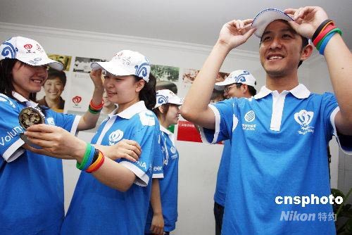 6月25日,北京市西城區(qū)團委為上崗服務的千余名志愿者換上了新裝。據(jù)悉,從7月1日開始,北京市奧運城市志愿者將身著新式的T恤和帽子兩件套,以更加清爽的形象示人。 中新社發(fā) 聞昭 攝