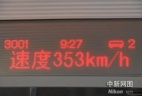 列車速度已經(jīng)提升到353公里/小時,但整體感覺還是非常平穩(wěn),噪音也不是很大。