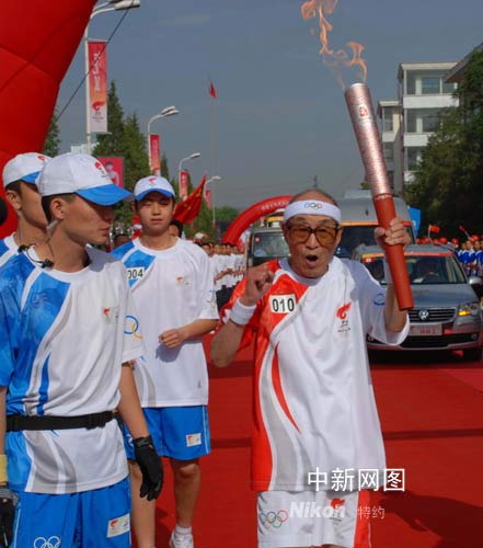 現(xiàn)年九十一歲的李智老先生是年齡最大的一位火炬手,他曾兩次與自行車隊(duì)友從大同出發(fā)到北京聲援奧運(yùn),倡導(dǎo)全民健身。張雷杰攝