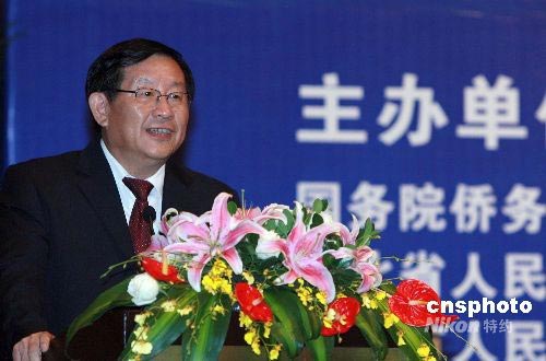 6月28日,“2008年華僑華人創(chuàng)業(yè)發(fā)展洽談會”在湖北省武漢市開幕,全國政協(xié)副主席、致公黨中央主席、中國科技部部長萬鋼在開幕式上作主旨講話。中新社發(fā) 廖文靜 攝