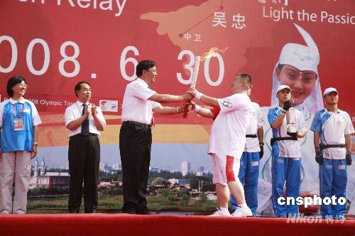 圖:奧運(yùn)火炬在寧夏吳忠傳遞