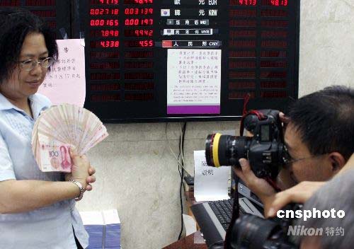 6月30日,人民幣開始在臺灣十三家銀行的多家分行正式接受雙向兌換,上限為2萬元人民幣。臺灣各家銀行共準備了數(shù)億元人民幣,臺灣民眾參與踴躍,僅臺灣銀行30日全天就買入近200萬元,賣出逾600萬元人民幣。中新社發(fā) 黃少華 攝