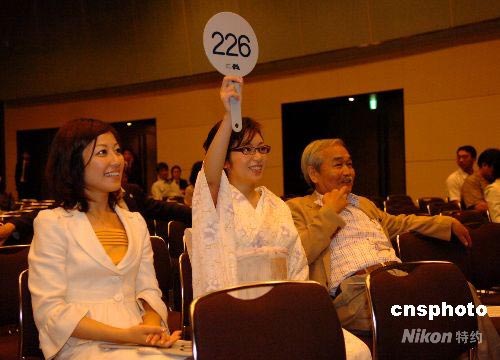 6月30日下午,日本漫畫家協(xié)會在東京為在四川大地震中遭受嚴(yán)重?fù)p失的綿陽市南山中學(xué)舉行漫畫作品義拍活動,圖為競拍現(xiàn)場。中新社發(fā) 朱沿華 攝