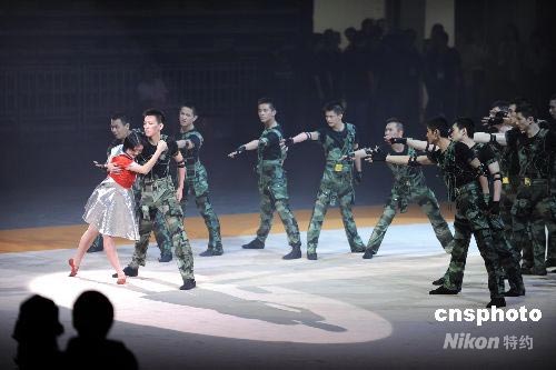 解放軍駐港部隊在慶香港回歸祖國11周年文藝匯演上演出抗震救災(zāi)節(jié)目。中新社發(fā) 洪少葵 攝