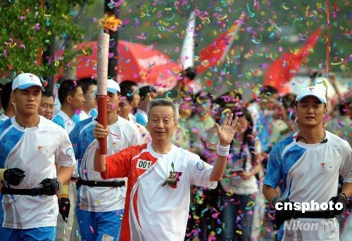 7月3日,奧運(yùn)火炬在陜西楊凌傳遞,旱地農(nóng)業(yè)生理生態(tài)學(xué)家、中國工程院院士山侖傳遞楊凌首棒火炬。中新社發(fā) 廖攀 攝