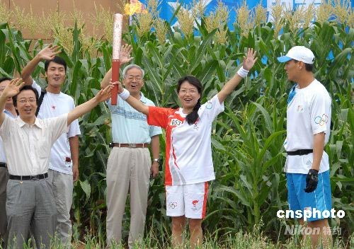 圖:奧運(yùn)火炬在楊凌試驗(yàn)農(nóng)田里傳遞
