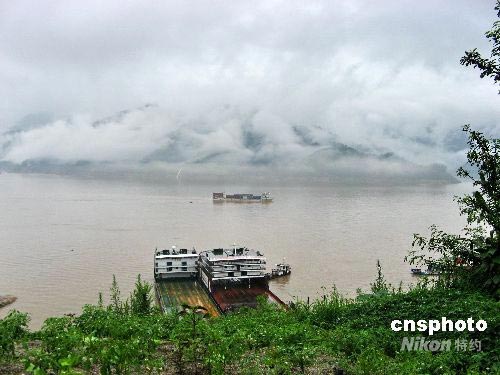 2008年7月5日,三峽大壩上游近壩區(qū)湖北秭歸大雨滂沱,雨后水黃山翠云蒸霧繞,群峰連綿起伏時(shí)隱時(shí)現(xiàn),恰似天上“仙境”落人間。據(jù)當(dāng)?shù)鼐用窠榻B,這是三峽成庫(kù)后,首次出現(xiàn)引人入勝的夏霧美景。中新社發(fā) 韓玉洪 攝