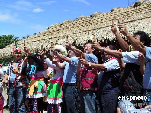 7月10日,大陸居民赴臺(tái)旅游北京首發(fā)團(tuán)成員在臺(tái)東參訪時(shí),恰逢當(dāng)?shù)厣贁?shù)民族部落豐年祭開幕。大陸同胞和臺(tái)灣同胞一起,放飛竹蜻蜓,啟動(dòng)豐年祭。這是臺(tái)東豐年祭開辦十一年來第一次有大陸同胞參與。參加啟動(dòng)儀式的臺(tái)東市長陳建閣(右五)認(rèn)為,這是臺(tái)灣少數(shù)民族歷史新的一頁。中新社發(fā) 徐長安 攝