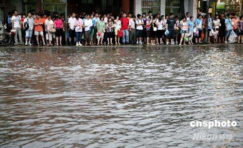7月11日,南京遭受暴雨襲擊,市區(qū)多處道路積水,由于時(shí)值周末,又正值下上班高峰時(shí)間,給市民出行帶來不便。另悉,當(dāng)?shù)貧庀笈_(tái)當(dāng)日16時(shí)許先后發(fā)布暴雨橙色預(yù)警信號(hào)和雷電紅色預(yù)警信號(hào),預(yù)報(bào)未來3小時(shí)內(nèi)南京市降雨量將達(dá)50毫米以上,并伴有強(qiáng)雷電。中新社發(fā) 鐘山 攝