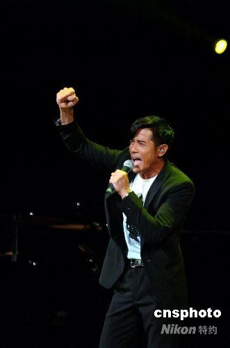 圖為郭富城高歌一曲《強》,為四川加油。中新社發(fā) 朱沿華 攝