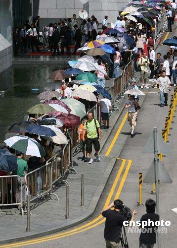 數(shù)千香港市民排隊(duì)領(lǐng)取奧運(yùn)紀(jì)念鈔票購物憑證(2)
