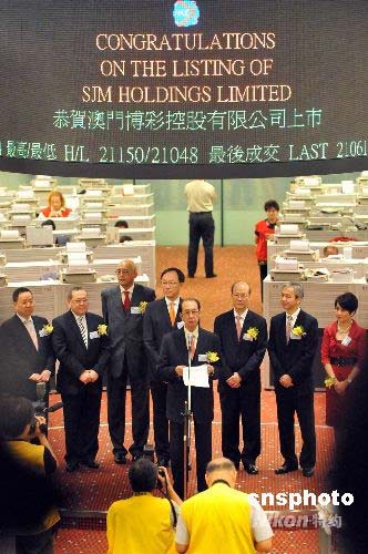 七月十六日,澳門博彩控股有限公司在香港港交所掛牌上市,澳博主席及執(zhí)行董事何鴻燊在上市儀式上致辭。中新社發(fā) 鄧慶樂 攝