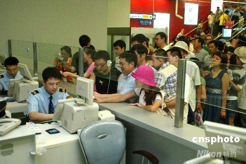 7月19日,北京地鐵10號線(一期)、奧運(yùn)支線、機(jī)場線開通試運(yùn)營。下午14時(shí),機(jī)場線正式向民眾開放,很多民眾在東直門站爭相購買車票,試乘機(jī)場線。中新社發(fā) 富田 攝