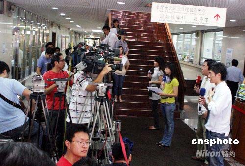 7月21日,臺(tái)灣前海軍中將雷學(xué)明等控告陳水扁等人誹謗案在臺(tái)北地方法院開(kāi)庭。這是是陳水扁卸任臺(tái)灣領(lǐng)導(dǎo)人后首度至法院出庭,創(chuàng)下卸任領(lǐng)導(dǎo)人以被告出庭的首例。為此,臺(tái)灣大批媒體在臺(tái)北地方法院的兩個(gè)入口擺開(kāi)陣仗采訪。中新社發(fā) 黃少華 攝