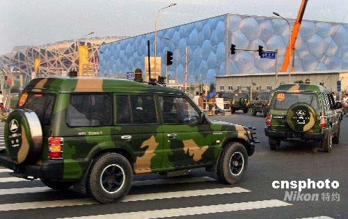 7月23日傍晚時(shí)分,大批軍車(chē)緩緩駛進(jìn)北京奧運(yùn)會(huì)主場(chǎng)館區(qū)域。北京奧組委安保部部長(zhǎng)劉紹武23日說(shuō),奧運(yùn)安保隊(duì)伍由警察、軍隊(duì)與武警組成,一旦比賽進(jìn)行時(shí)出現(xiàn)突發(fā)事件,將以人員安全為安保最優(yōu)先。中新社發(fā) 劉新 攝