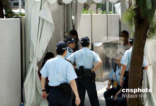 七月二十六日,參加奧運(yùn)馬術(shù)比賽的首批馬匹運(yùn)抵香港沙田賽場,警方高度重視保安情況,沙田賽場各入口處戒備森嚴(yán)。當(dāng)日,奧運(yùn)馬術(shù)公司強(qiáng)調(diào),將跟香港警方、國際奧委會和北京奧組委等保持密切聯(lián)系;若警方提升風(fēng)險評估級別,馬術(shù)公司也會作出相應(yīng)調(diào)整和配合。中新社發(fā) 洪少葵 攝