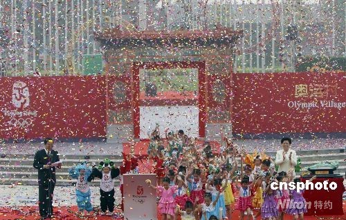7月27日,北京奧運村正式開村,中國代表團也將舉行入住儀式。圖為漫天飛花慶祝奧運村正式開村。中新社發(fā) 杜洋 攝