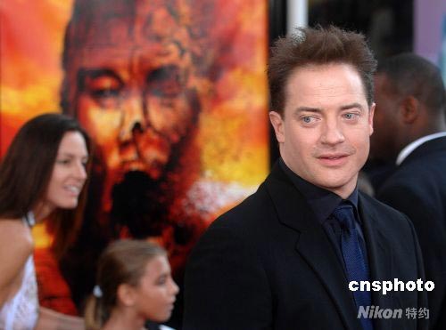 環(huán)球影業(yè)七月二十七日在好萊塢舉行《木乃伊3:龍帝之墓》首映式。影片男主角扮演者布蘭登·弗雷澤(Brendan Fraser) 出席首映式。中新社發(fā) 張煒 攝