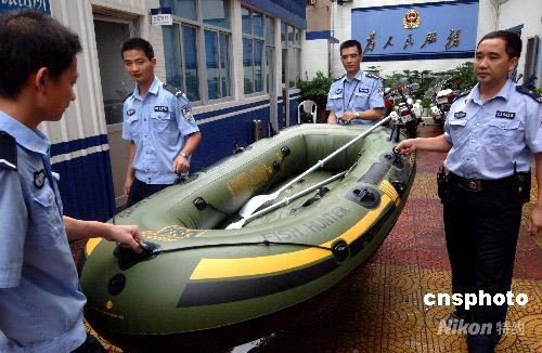 7月28日,福州一社區(qū)派出所警員調(diào)來沖鋒舟以應(yīng)對強臺風(fēng)“鳳凰”可能對市區(qū)造成的侵襲。中新社發(fā) 劉可耕 攝