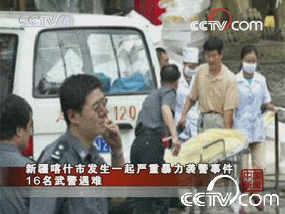 據(jù)中央電視臺報道,8月4日上午8時許,新疆喀什市邊防支隊(duì)集體出早操行至一賓館時,突遭2名作案分子駕車襲擊,并引發(fā)車上的爆炸物,當(dāng)場造成16人死亡,16人受傷,2名作案人員已經(jīng)被抓獲,案件正在進(jìn)一步審理中。