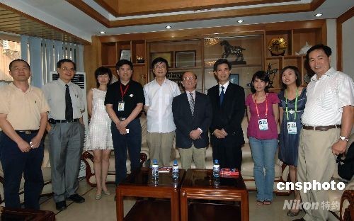 臺(tái)灣“中央社”董事長(zhǎng)黃肇松(左六)、大陸部主任李培雄(左二)一行8月9日訪問中國(guó)新聞社,與中新社社長(zhǎng)郭招金(右四)、總編輯劉北憲(左五)、副總編章新新(左四)、副總編夏春平(左一)、副總編王瑤(左三)、港臺(tái)部主任耿軍(右一)等合影。中新社發(fā) 鄒憲 攝