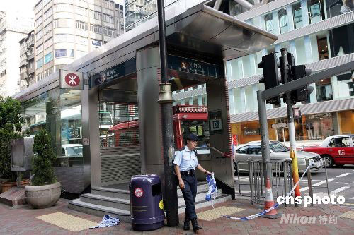 圖為在旺角警方封閉其中一個地鐵站。中新社發(fā) 洪少葵 攝
