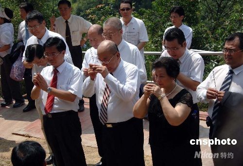 八月十四日,中國(guó)國(guó)民黨主席吳伯雄回到祖籍地--福建永定縣下洋鎮(zhèn)思賢村,前往祖墳祭拜祖先。圖為吳伯雄夫婦一行向祖墳上香。中新社發(fā) 鄭祚聲 攝