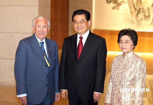 胡錦濤夫婦歡迎出席奧運(yùn)會(huì)閉幕式的薩馬蘭奇