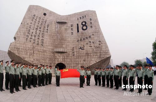 沈陽軍區(qū)某部官兵在“九·一八”歷史博物館莊嚴(yán)宣誓。中新社發(fā) 羅瀾 攝