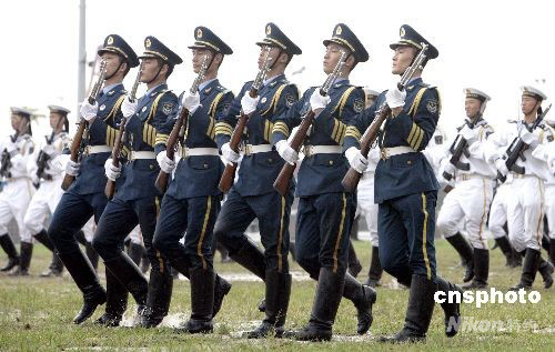 圖為駐港部隊(duì)槍械團(tuán)體操表演。中新社發(fā) 張勤 攝