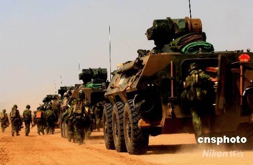 濟南軍區(qū)機械化步兵旅火速集結(jié)訓練。中新社發(fā) 宋吉河 攝