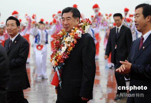 圖為中共中央政治局委員、國務院副總理回良玉戴上寧夏民眾獻上的花環(huán)。中新社發(fā) 廖攀 攝
