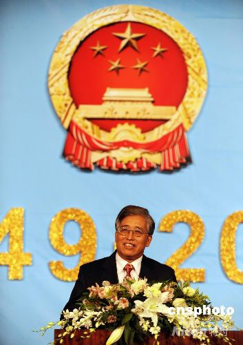 當(dāng)?shù)貢r間9月23日晚,中國駐洛杉磯總領(lǐng)事館在洛杉磯環(huán)球影城舉行中華人民共和國成立五十九周年國慶招待會,來自當(dāng)?shù)卣虒W(xué)界名流、華人華僑代表等數(shù)百人參加了招待會。中國駐洛杉磯總領(lǐng)事張云發(fā)表演講,感謝各界人士為促進(jìn)中美關(guān)系的發(fā)展做出的貢獻(xiàn)。中新社發(fā) 張煒 攝