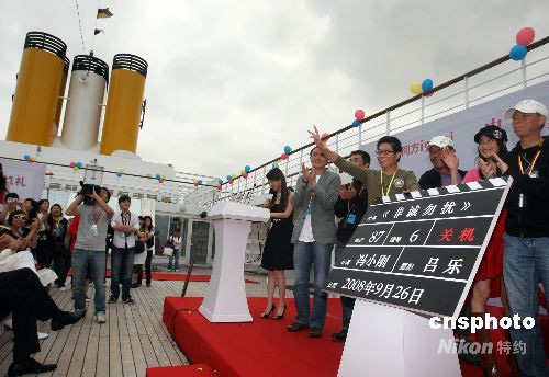 9月26日,馮小剛攜09年賀歲新片《非誠(chéng)勿擾》全體主創(chuàng)人員搭載歌詩(shī)達(dá)豪華郵輪完成電影拍攝返滬,并在郵輪上舉行了《非誠(chéng)勿擾》的關(guān)機(jī)儀式。中新社發(fā) 湯彥俊 攝