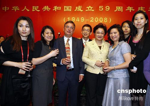 9月29日,國(guó)務(wù)院僑辦和中國(guó)海外交流協(xié)會(huì)舉行招待午宴,歡迎來(lái)京參加國(guó)慶59周年活動(dòng)的華人華僑代表,國(guó)務(wù)院僑辦主任李海峰致祝酒辭。中新社發(fā) 杜洋 攝