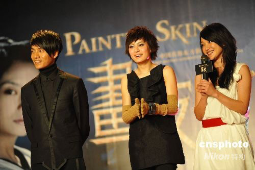圖為《畫(huà)皮》主演陳坤、孫儷、周迅在慶功會(huì)現(xiàn)場(chǎng)。