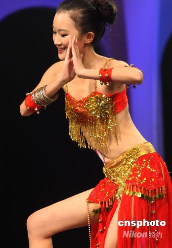 10月8日晚,2008亞洲小姐京津地區(qū)選拔賽在天津舉行。圖為參賽佳麗展示才藝。中新社發(fā) 錢興強(qiáng) 攝