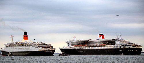 10月16日,巨型郵輪“伊麗莎白女王二號”(左)與“瑪麗女王二號”在美國紐約港相會。當(dāng)天,這兩艘豪華郵輪在紐約港會合,隨后一起駛回倫敦。已運營逾40年的豪華郵輪“伊麗莎白女王二號”將在這次航行之后退役,然后被改造成一座水上五星級酒店,?吭诎⒙(lián)酋迪拜的朱邁拉棕櫚島旁。