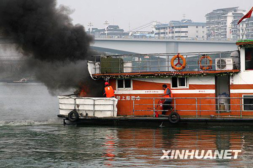 10月20日,一艘載有40名旅客的客船模擬與裝運(yùn)硫酸的液貨船發(fā)生碰撞,造成客船機(jī)艙起火爆炸。 當(dāng)日,廣西迄今最大規(guī)模內(nèi)河水上搜救演習(xí)在柳州市柳江河段舉行,演習(xí)完成了旅客疏散、船舶滅火、污染控制等課目演練,數(shù)百人、30多艘救援船舶參加。演習(xí)旨在完善水上突發(fā)事件應(yīng)急反應(yīng)聯(lián)動機(jī)制,為廣西水上交通營造安全氛圍、提供安全保障。