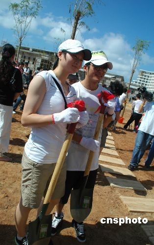 10月21日,參加“三亞城市精神評選暨奧運冠軍三亞行活動”的14位奧運會冠軍在三亞灣種下“冠軍林”。本次來三亞的主要是拳擊、跆拳道、舉重等力量型項目的奧運冠軍,包括張小平、鄒市明、陸永、陳燮霞等及悉尼、雅典兩屆前奧運會冠軍陳中等。中新社發(fā) 尹海明 攝