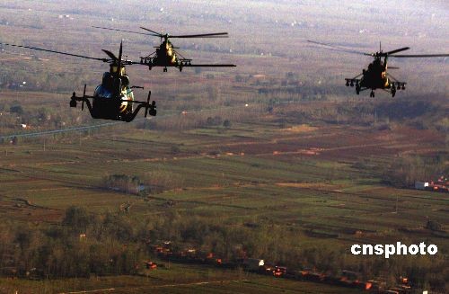 10月24日,中國人民解放軍濟(jì)南軍區(qū)參加“前鋒--2008”演習(xí)部隊(duì)在訓(xùn)練基地集結(jié)完畢,裝甲、陸航部隊(duì)進(jìn)入訓(xùn)練階段。這次演習(xí)以信息化條件聯(lián)合作戰(zhàn)為背景,進(jìn)行實(shí)兵、實(shí)彈演練,將有二百余名外國軍人、留學(xué)生參觀。據(jù)悉,這是中國軍隊(duì)首次大規(guī)模對(duì)外國留學(xué)生開放軍事訓(xùn)練演習(xí)。中新社發(fā) 宋吉河 攝