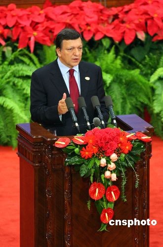 歐盟委員會主席巴羅佐在開幕式上講話。中新社發(fā) 廖文靜 攝