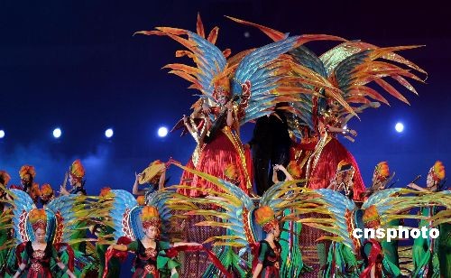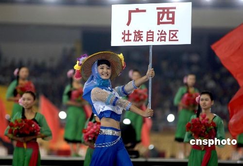 開(kāi)幕式上,引導(dǎo)小姐身著極具閩南特色的鱘埔女裝帶領(lǐng)運(yùn)動(dòng)員進(jìn)場(chǎng)。中新社發(fā) 王東明 攝