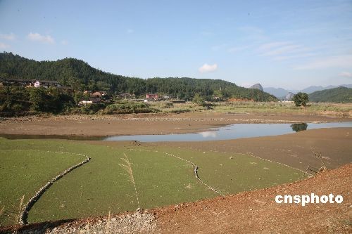圖為二十六日銅鼓縣一村莊門前的一條河流因附近山地水土流失面臨斷流。中新社發(fā) 吳慶才 攝