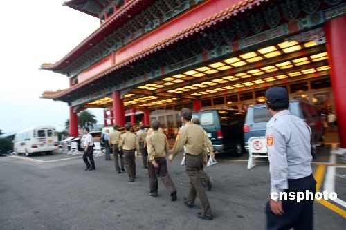 十一月二日下午,臺(tái)北圓山飯店一帶戒備森嚴(yán)。大陸海協(xié)會(huì)會(huì)長陳云林將于三日抵臺(tái)入住圓山飯店,舉行“第二次陳江會(huì)”。臺(tái)北警方在圓山飯店外圍約部署兩百名警力維安。中新社發(fā) 洪少葵 攝