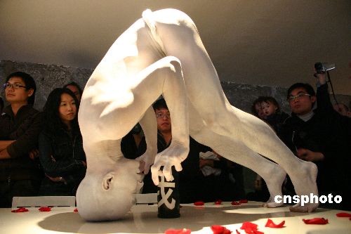11月2日下午,馬來西亞的華裔舞者李瑞強(qiáng)在北京鼓樓東大街的一家酒吧為大家表演現(xiàn)代舞“人與神”。李瑞強(qiáng)在半露天的環(huán)境中表演個人獨(dú)舞,雖然天氣寒冷,但是他全情投入,演出忘我,使肢體動作沖破語言與文化的障礙,觸動了觀眾的心。李瑞強(qiáng)以為,舞蹈是一種活生生的生命體驗,是live art。這個舞蹈是為了引發(fā)觀眾對“人+神”主題的聯(lián)想。中新社發(fā) 郭海鵬 攝
