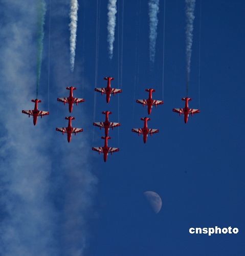 11月6日,印度空軍“陽(yáng)光”飛行表演隊(duì)的9架飛機(jī)在第七屆珠!昂秸埂鄙蠟橛^(guān)眾作了數(shù)十個(gè)飛行科目表演。中新社發(fā) 譚超 攝