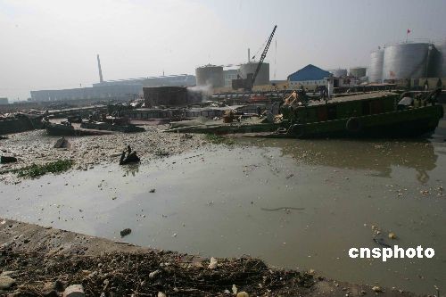 11月13日上午7點(diǎn)55分,?吭谡憬『贾菔杏嗪紖^(qū)塘棲鎮(zhèn)榮圣化工碼頭的一艘裝有120噸二氧化碳的船只發(fā)生爆炸。事故造成兩人死亡三人受傷,另外一艘裝有濃硫酸的船只發(fā)生泄漏。中新社發(fā) 林云龍 攝