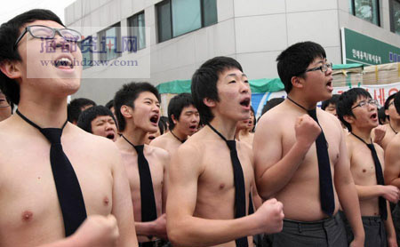 低年級男生赤膊為前輩壯行。(圖片來源:海峽都市報)